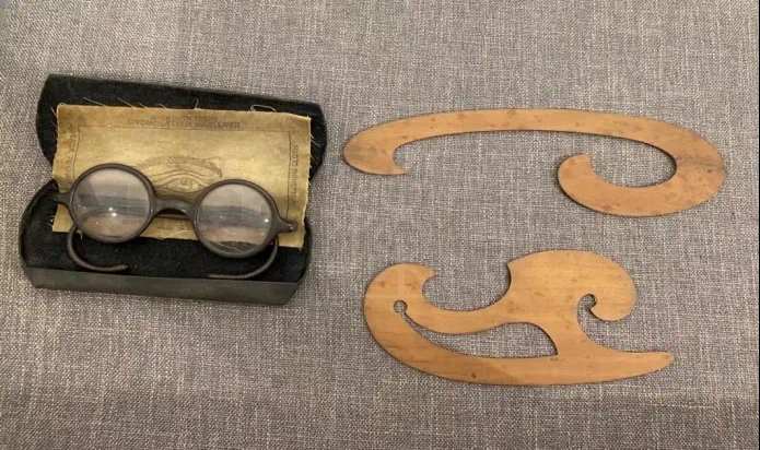 ▲1918年至1919年间,在上海寓所,孙中山“以平生之抱负和积年之研究所得”,先后写成《孙文学说》和《实业计划》。此为孙中山阅读写作时所使用的曲线板和眼镜。图片来源:上海孙中山故居纪念馆