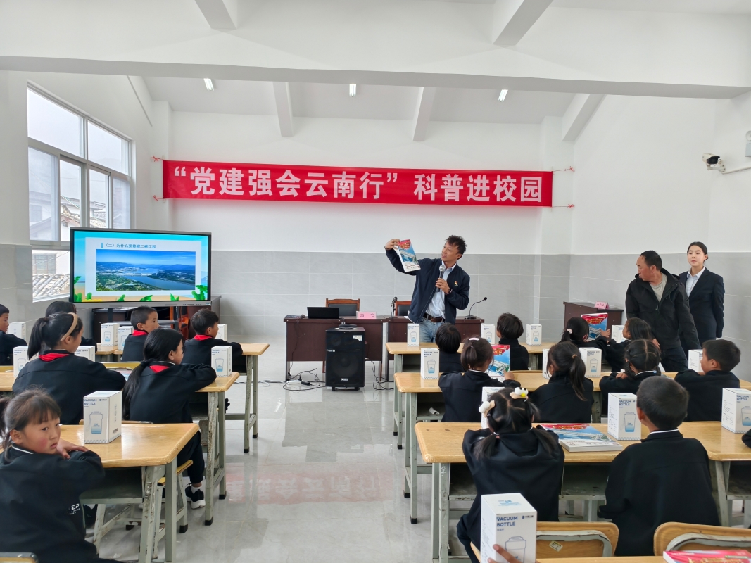9月底,受中国水力发电工程学会党委邀请,三峡工程博物馆作为协办单位赴云南大理剑川县金华镇庆华完小参加“党建强会云南行”助力乡村振兴公益捐赠并开展科普进校园活动,为当地少数民族孩子们带来了一场生动有趣的科学课堂,将优质科普资源延伸至教育薄弱地区。