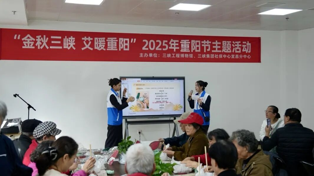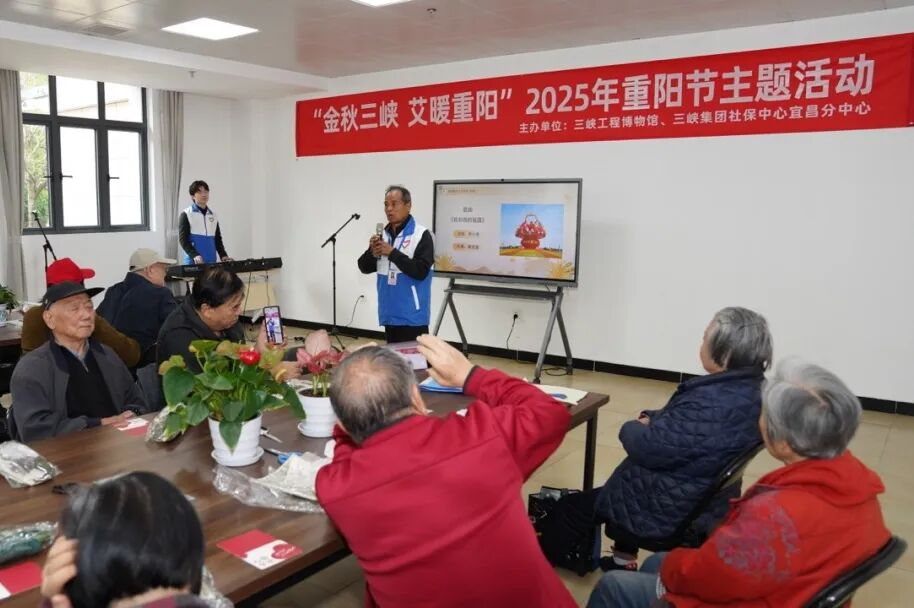 秋风送爽,重阳又至。10月29日,三峡工程博物馆联合三峡集团社保中心宜昌分中心,走进宜昌市西陵花园小区,举办“金秋三峡 艾暖重阳”重阳节主题活动。活动通过故事分享、文艺展演与手工体验等形式,为三峡集团退休职工们送上节日问候和文化关怀,在温馨互动中弘扬尊老爱老的传统美德,传播三峡文化和中华优秀传统文化。
