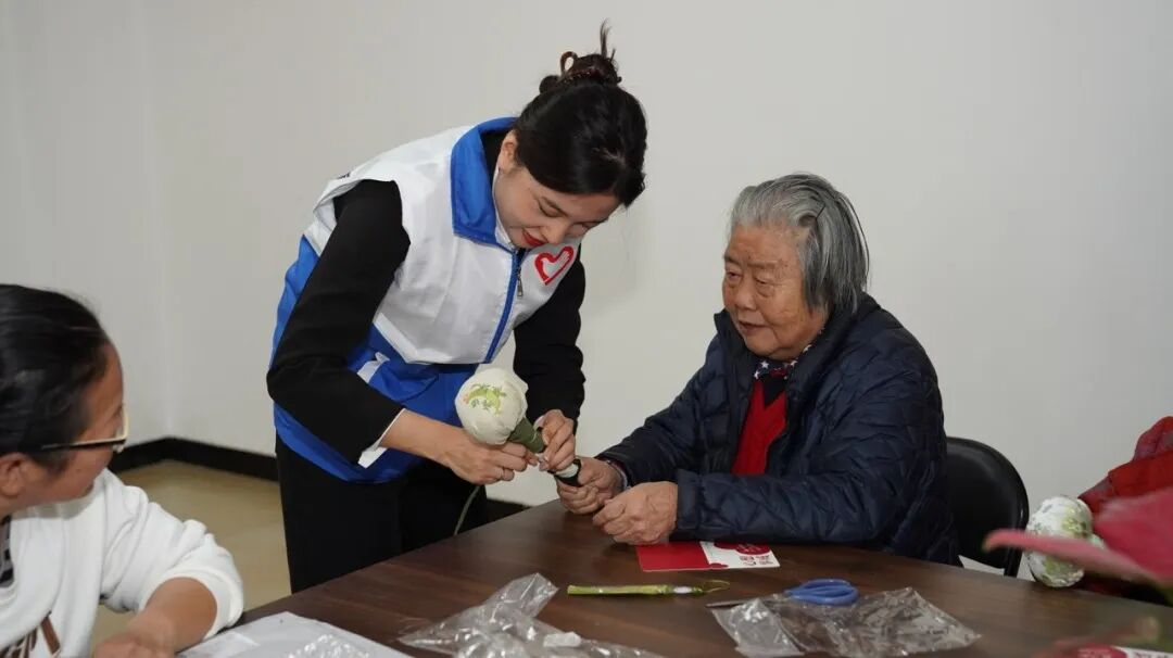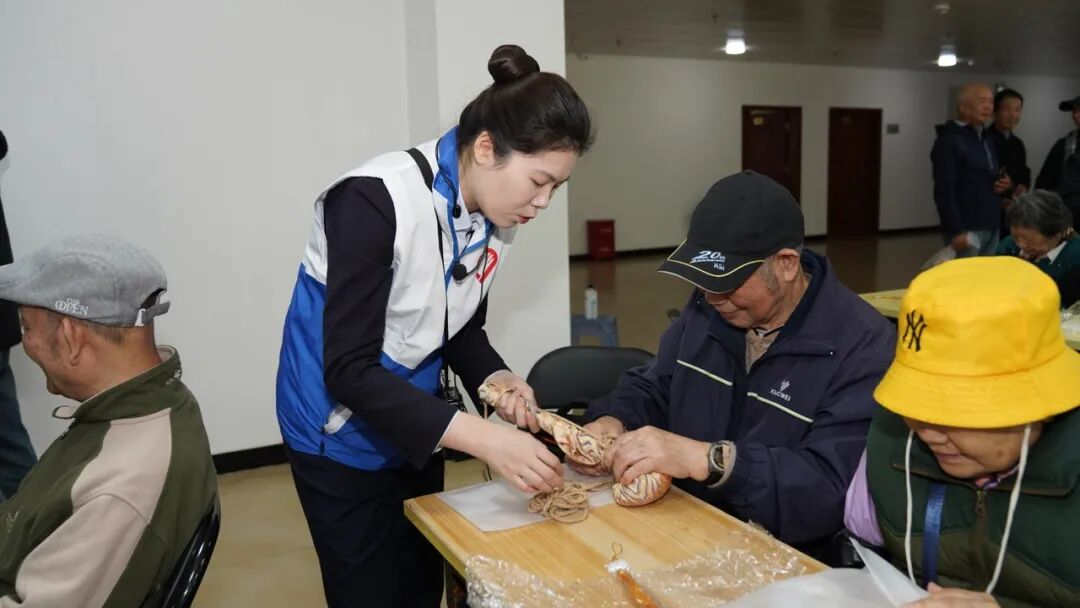 活动还设置了重阳节特色手工体验环节。工作人员为老同志们讲解重阳传统习俗和艾草养生知识,并指导大家动手制作艾草养生锤。在志愿者的细致讲解和帮助下,一个个清新精致的艾草锤逐渐成型。小小的艾草锤,不仅承载着祈福安康的美好寓意,也成为传递温情的纽带。