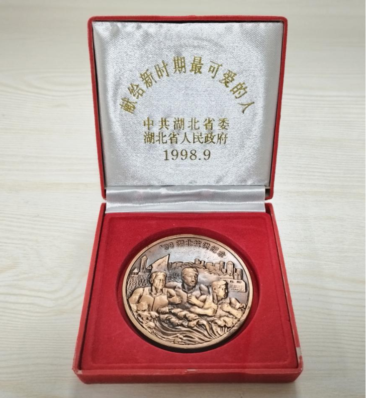 为了纪念这段艰难而光辉的岁月,湖北省委、省政府特别制作了“98湖北抗洪纪念章”赠送给参加抗洪抢险的指战员,杨胜奎获赠一枚纪念章,他一直珍藏在身边。这枚纪念章不仅是对抗洪抢险英雄的崇高敬意,更是那段历史的生动见证。纪念章上,三名军民手挽手在湍急的洪水中筑起人墙,用血肉之躯勇挡滔滔洪水,画面令人动容。