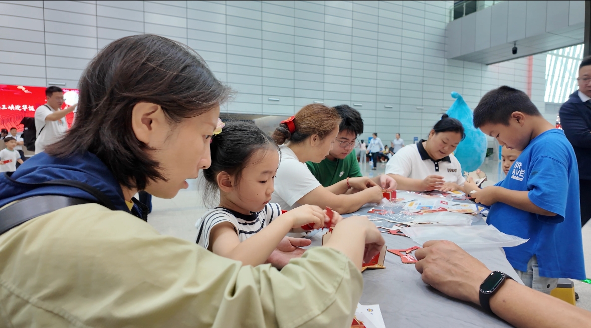▲亲子家庭参与“星辉耀国 山河同庆”手工制作活动