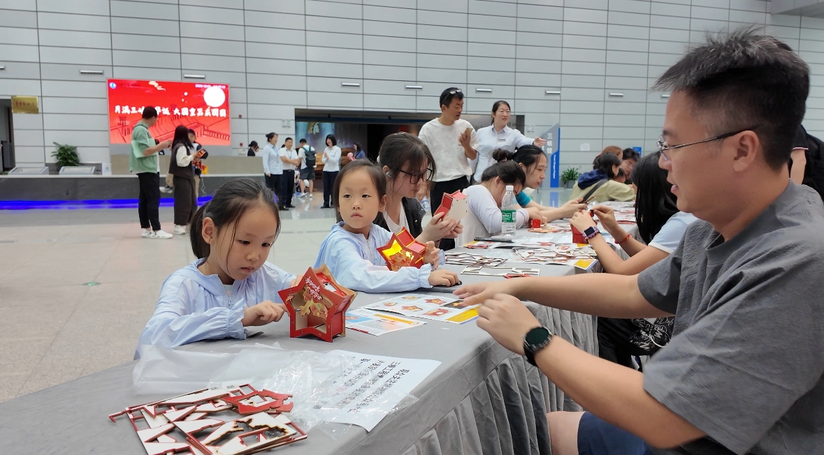 多元活动吸引观众深度参与。馆内推出的套色章明信片收集活动备受欢迎,集章打卡成为观众们的热门选择;10月1日至3日,“星辉耀国 山河同庆”手工制作活动吸引众多亲子家庭参与,家长与孩子们共同拼装星星小夜灯,在动手实践中感受匠心传承,传递对祖国的美好祝愿。